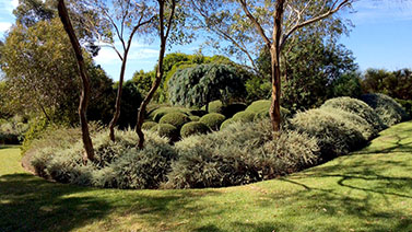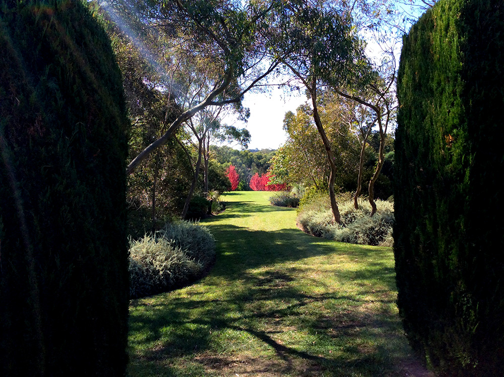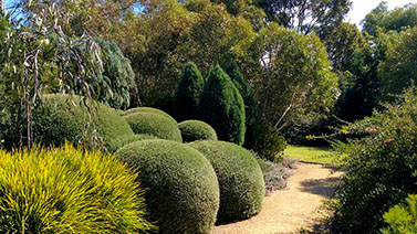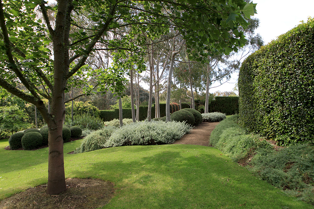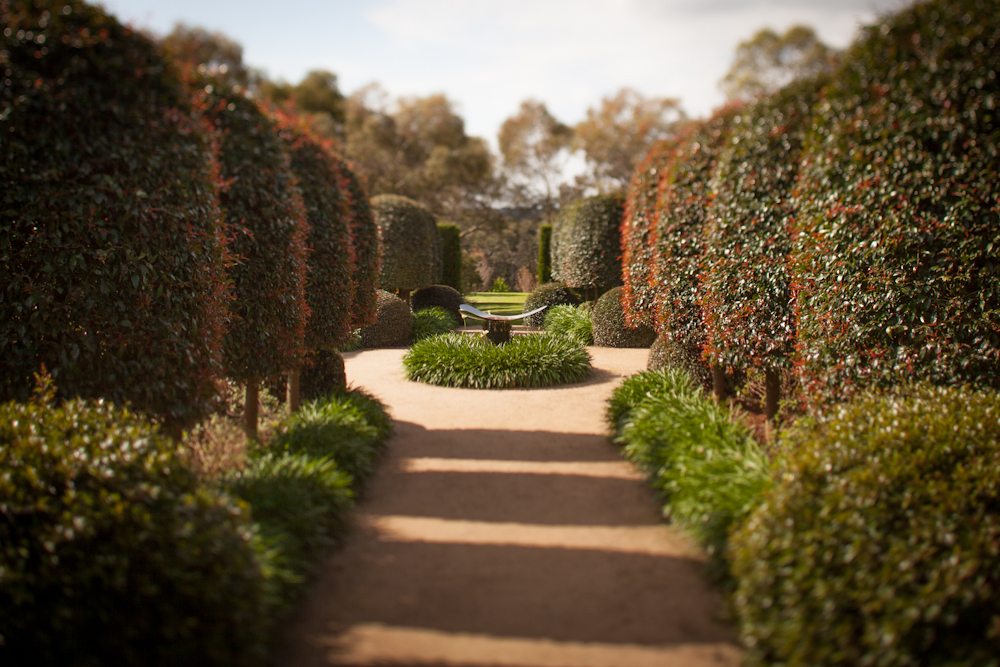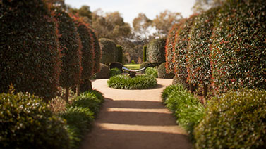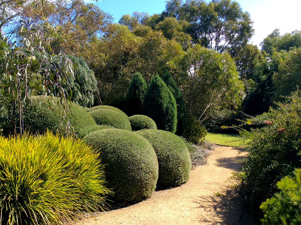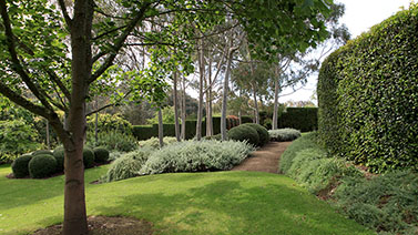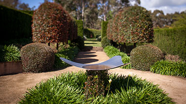 The Garden Vineyard is a tranquil garden where the visitor passes through European “rooms” such as a walled courtyard, a large perennial border and a formal area flanked by clipped Lilly Pillys to a garden planted exclusively with Australian natives.
